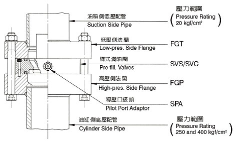 在大型压力机构的快进行程需从油箱向油缸吸油。在加压时可防止油从油缸流入油箱。反向时油缸则会将油排至油箱内。